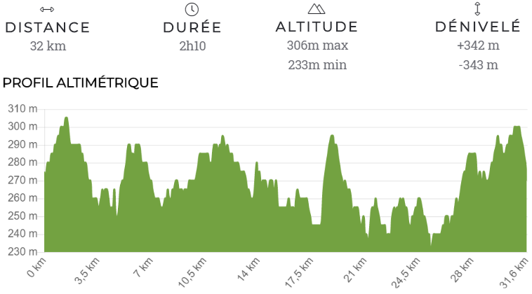 The loop (n ° 10) is located in the Ognon valley, a river which delimits the departments of Haute-Saône and Doubs. This loop, which crosses the Chemin Vert, is also close to the Les Côtes des Cranges loop (n ° 5) at Beaumotte-Aubertans.