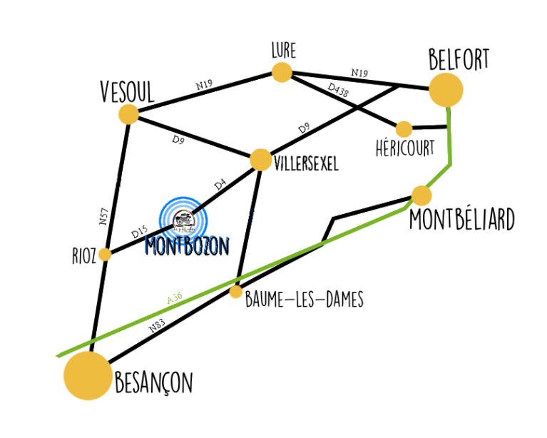 La cité de Montbonzon est située à la frontière du Doubs et le la Haute Saône à 35 km de Besançon et 25 km de Vesoul