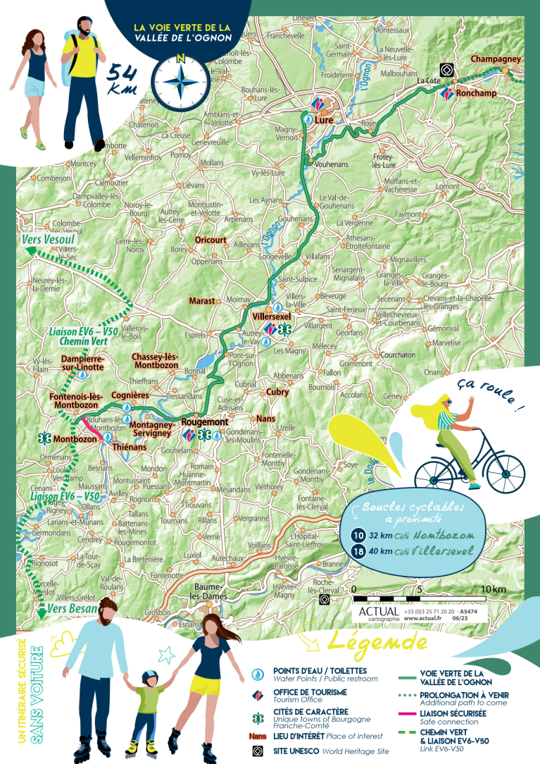 Le Chemin Vert est un itinéraire en site propre aménagé sur une ancienne voie de chemin de fer, qui permet de rejoindre Vesoul puis la vallée de la Saône. En continuation de la Voie Verte cet itinéraire vous permettra à partir de Montbozon de rejoindre Lure et Ronchamp sur plus de 54 km de voies sécurisées et sans voitures
